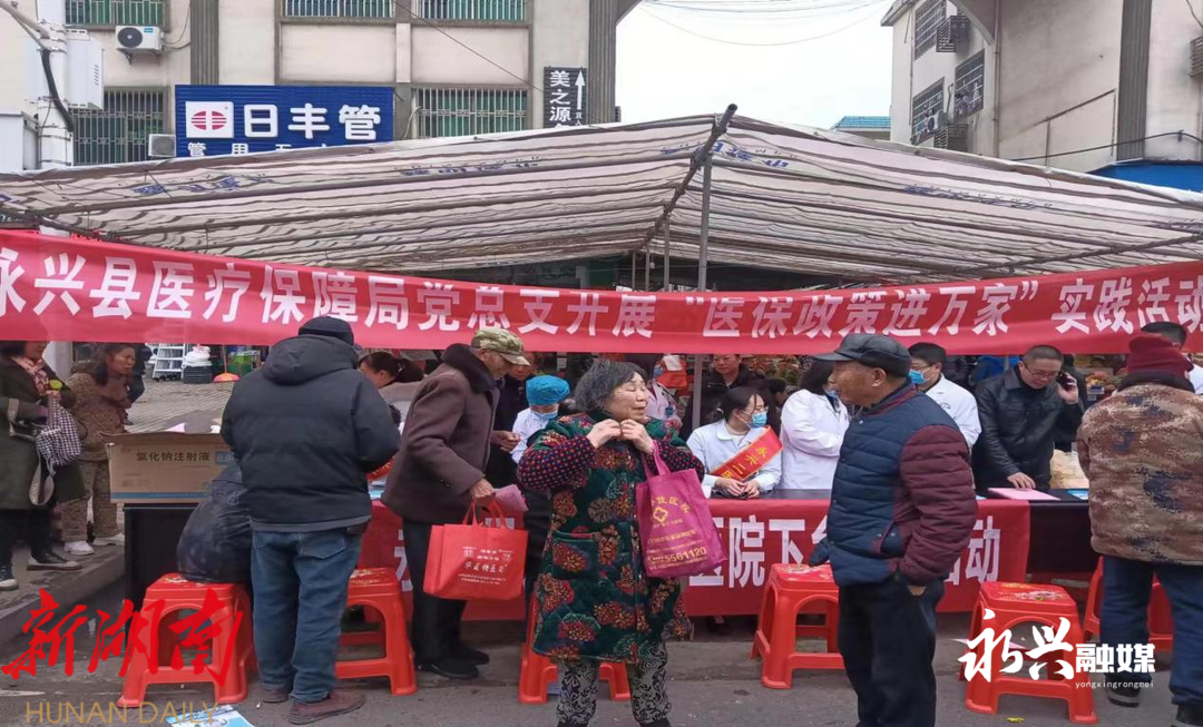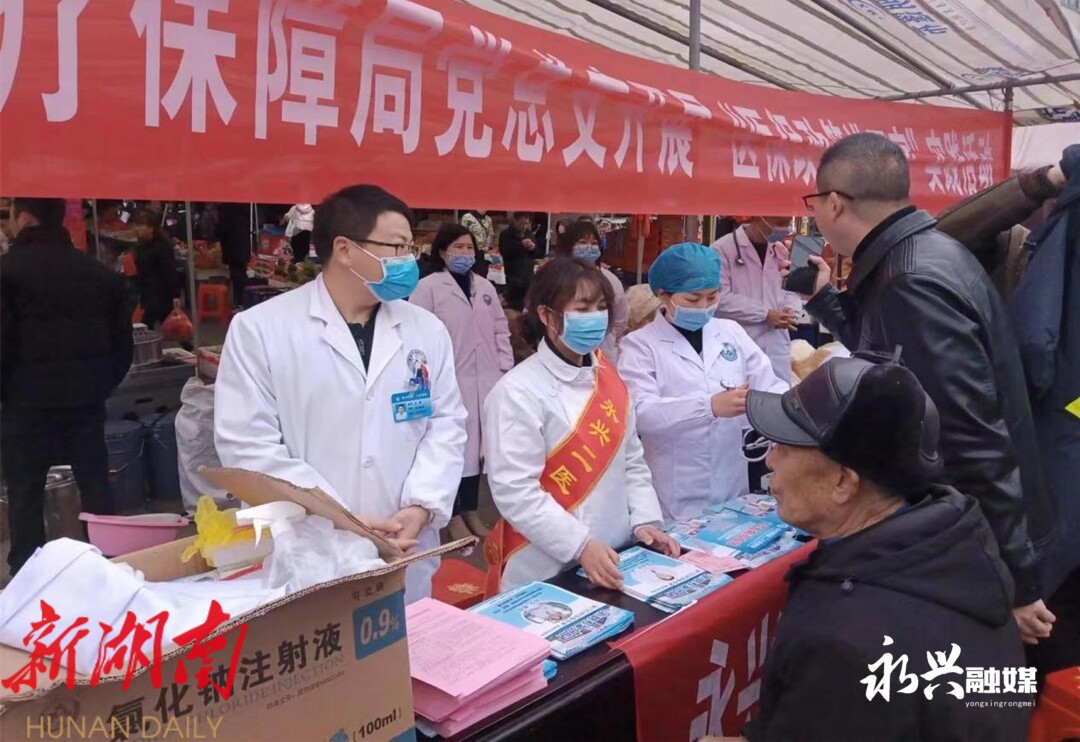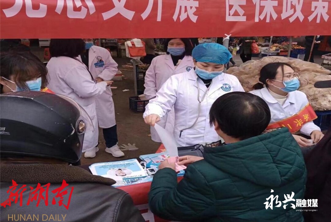 【永兴县融媒体中心2月15日讯】2月15日,永兴县第二人民医院联合永兴县医疗保障局在马田镇新市场开展义诊活动,将健康服务和 政策宣传送到群众身边。