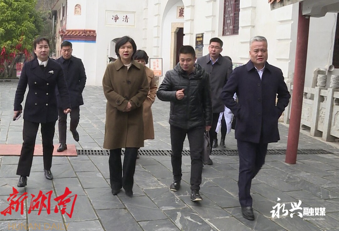 【永兴县融媒体中心2月15日讯】2月15日,市委常委、常务副市长冯海燕到永兴县调研督导旅发大会观摩项目建设、食品安全等工作。县委书记刘朝晖参加联点项目中国白银文化园和观音岩的调研督导。