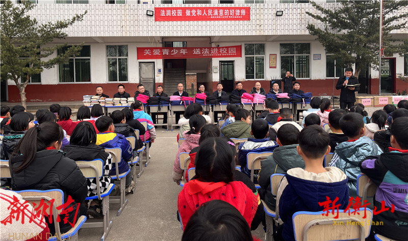 衡山县融媒体中心2月16日讯【记者:蒋鹏 刘紫叶】 为加强青少年法治宣传,2月16日,衡阳市司法局、衡山县司法局联合衡阳市律师行业来到我县白果镇,在青企协岳北希望小学等学校开展"传承红色基因 牵手衡山学子"主题党日以及“法治进校园,护蕾在路上”关爱未成年人宣传活动。