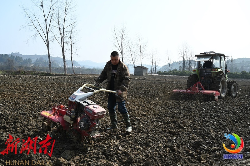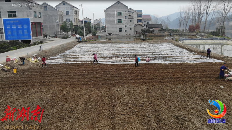 近日,记者在麻阳苗族自治县舒家村乡舒家村看见,大型翻耕农机来回穿梭耕作,为沉寂了一个冬天的蔗田松土透气。多名蔗农在翻耕好的蔗田里栽种甘蔗:放苗、施肥、覆土、盖膜,一气呵成,一派忙碌的生产景象。