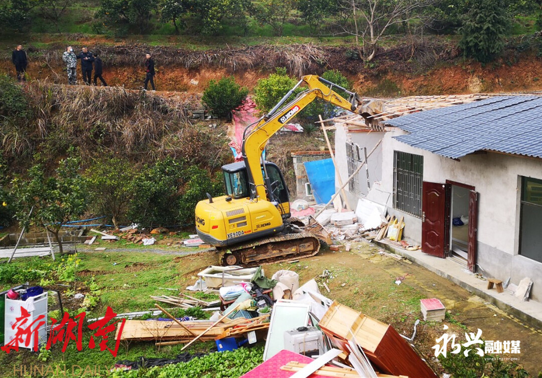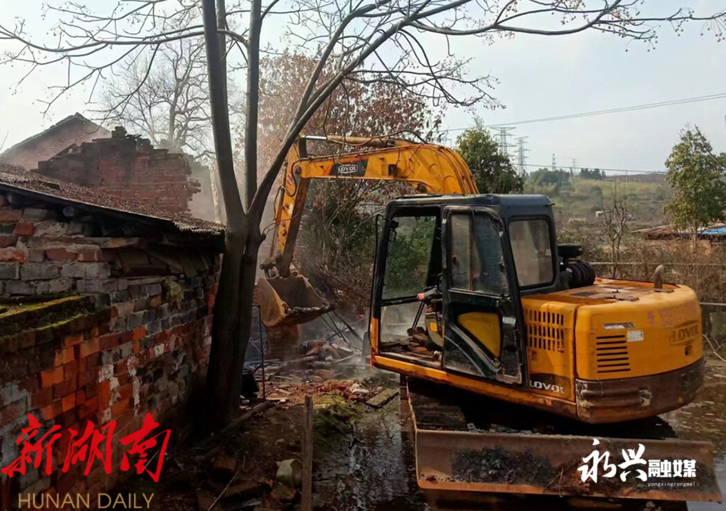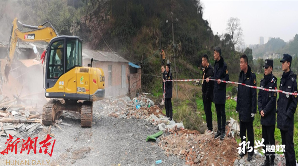 【永兴县融媒体中心2月17日讯】2月16日,永兴县便江街道调集60名干部配合县公安、国土、建管、住建等多部门在银都大道、郴永大道公路沿线开展乡村风貌提质“拔寨”攻坚战,对沿线可视范围内的杂房、危房、空心房及山边的违建房等影响市容市貌的“硬骨头”进行全部拆除清理,全力奋战旅发大会。