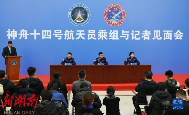 新华社北京2月17日电(李国利、占康)中国航天员科研训练中心17日下午在北京航天城举行神舟十四号航天员乘组与记者见面会。陈冬、刘洋、蔡旭哲3名航天员从太空返回75天后首次正式公开亮相。