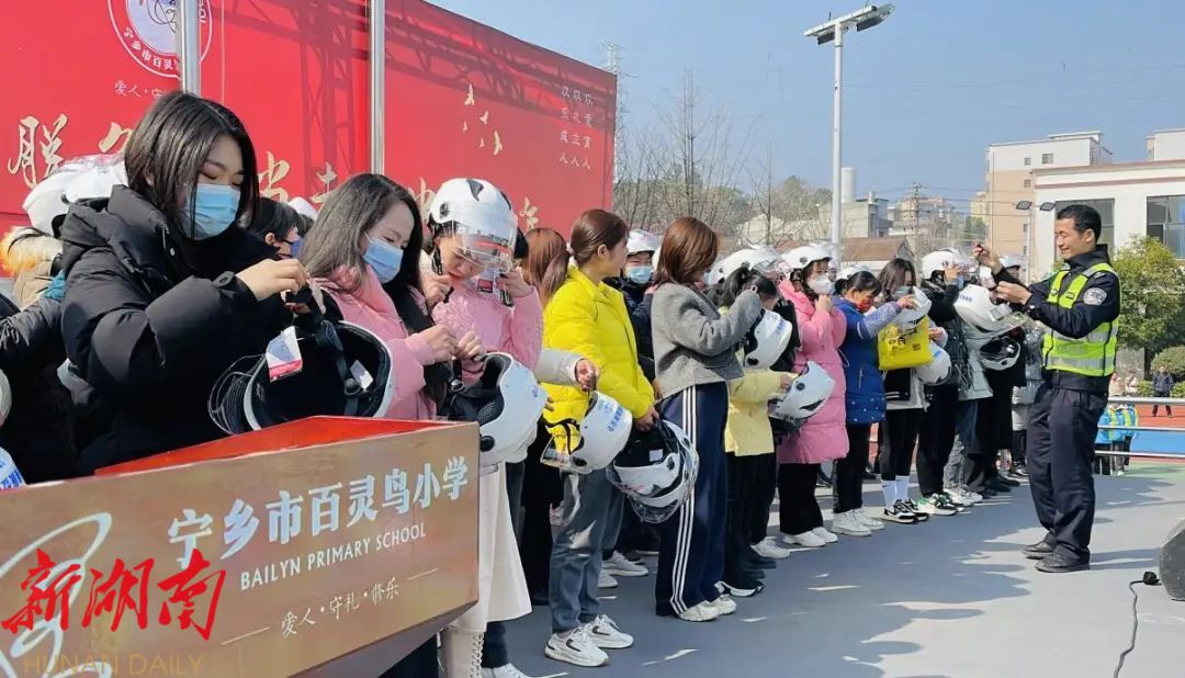 百灵鸟小学举行“挺膺担当动如脱兔 争当未来中国少年”2023年春季开学典礼。典礼上,学生代表深情讲述了“七一勋章”获得者张桂梅、“共和国勋章”获得者孙家栋以及保家卫国、安守国防的戍边英雄的故事。当天,宁乡交警大队利用开学典礼契机,进校园上好春季“开学第一课”,为师生和家长代表送上交通安全“大礼包”,宣讲交通安全知识,现场免费发放安全头盔100余顶。