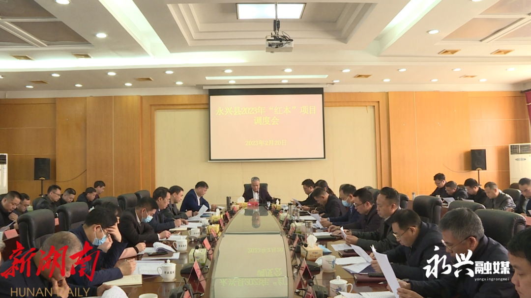 【永兴县融媒体中心2月20日讯】2月20日上午,县委书记刘朝晖主持召开全县2023年“红本”项目调度会,对今年“红本”项目任务再校准、再安排、再部署。县委副书记、县长宾心华参加会议。