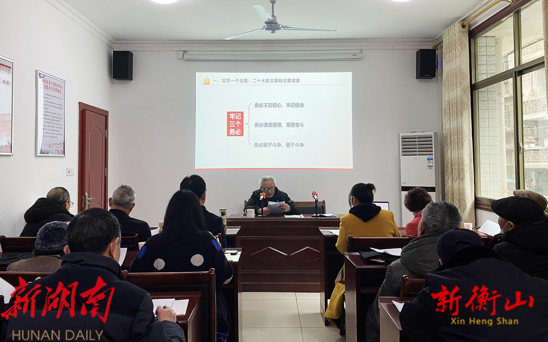 衡山县融媒体中心2月20日讯【记者:廖晶 戴玮】2月20日,我县离退休干部学习贯彻党的二十大精神宣讲会在县老干部服务中心举行。部分在衡的离退休干部、老干局退休干部、县老干部(老年)大学校委会成员等参加会议。