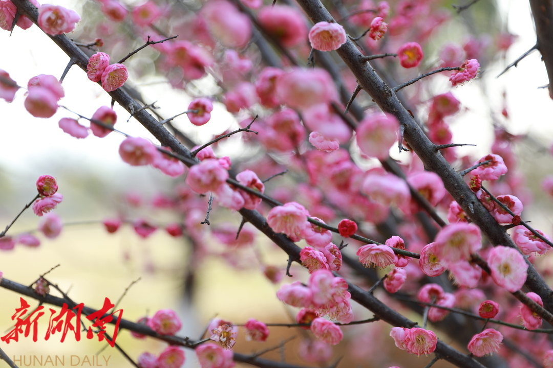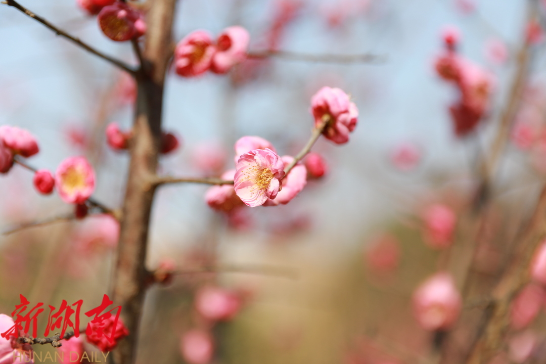 新湖南客户端2月20日讯(通讯员 何丽 唐孟明 廖湘 杜辰阳)在东安县紫水国家湿地公园内,梅花悄然绽放,艳丽多姿,迎来最佳观赏期。走进梅花林中,一簇簇粉色的梅花随风摆动,成片梅花显得更加美丽且充满生机,游人穿梭在暗香浮动的花林里赏花拍照,尽情享受大自然的画意诗情。