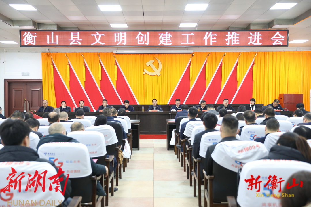衡山县融媒体中心2月20日讯【记者:旷雨澄 刘永欢】2月20日下午,我县召开文明创建工作推进会。县委书记戴新贤出席会议并讲话,县委副书记、政法委书记陆志宏主持会议。