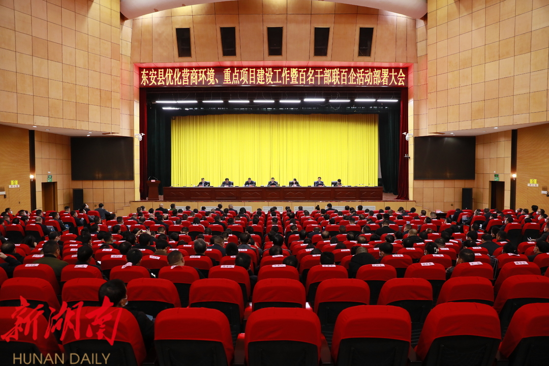 新湖南客户端2月23日讯(通讯员 何军成 易恒戬 杜辰阳)2月23日,东安县优化营商环境、重点项目建设工作暨百名干部联百企活动部署大会在东安会堂召开。县委书记唐何出席会议并讲话,县委常委、副县长唐久梅主持会议,县领导谢梅芳、张恒、成宇、黄敏、秦波参加。