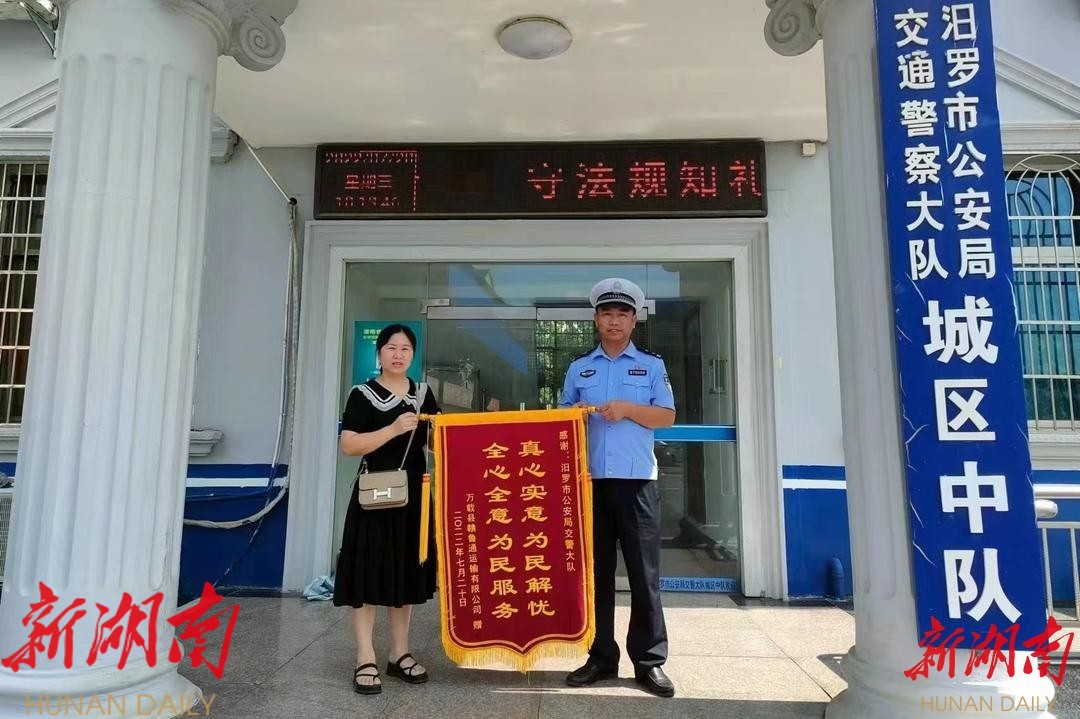 湖南日报·新湖南客户端11月24日讯(通讯员 张为 易婷)7月20日上午,一面写着“真心实意为民解忧,全心全意为民服务”的鲜艳锦旗被送到汨罗市交警大队城区中队中队长杨毅手中,对汨罗交警全力帮助查扣一辆重点交通违法车辆,及时消除安全隐患,为公司排忧解难表示感激之情。