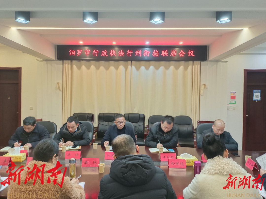 湖南日报·新湖南客户端2月9日讯(通讯员 许磊)为统筹协调全市安全生产行刑衔接工作,增进各部门信息沟通和相互协作,2月8日上午,汨罗市人民政府副市长付文勇召集市委政法委、市政府办、市安委办、市安全生产打非办、市纪委、应急管理局、公安局、检察院、法院、司法局等部门单位召开行政执法行刑衔接联席会。