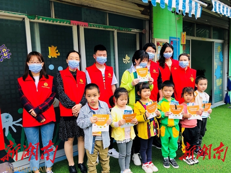 (社区党员志愿者在辖区蓓蕾幼儿园开展宣传)