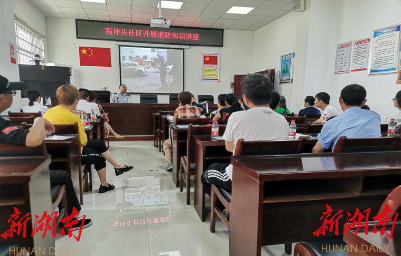 为普及消防安全意识,提高居民群众防火应急处理能力, 7月16日,永安街道在高坪头社区为居民群众开展了消防安全知识培训讲座,特邀湖南全民消防知识宣传中心蓝靖教官授课,蓝教官围绕近期发生的火灾案例进行分析讲解,结合社区实际情况,讲述了火灾的危害性、火灾的预防、灭火器材使用方法以及初期火灾处理等相关知识,极大地增强了居民群众在火灾中自救、互救的意识。