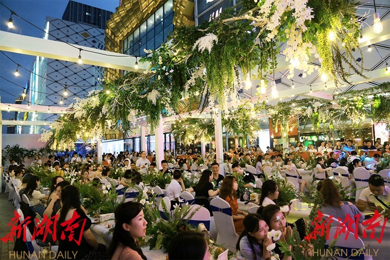 湖南日报 ·新湖南客户端8月26日讯(通讯员 向高) 8月 25 日 是 七夕节 ,当天 晚 上 ,由共青团武陵区委主办,武陵区南坪街道党工委、共青团安乡县委、常德万达广场商业管理有限公司、中国邮政储蓄银行常德市分行协办的 “一见青心 • 果燃甜蜜 ” 武陵区第三届七夕青年联谊会举行, 160 名单身男女在常德万达广场开启了星空下的浪漫约会。
