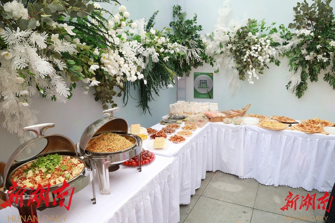 本次活动还大力倡导节约粮食,现场节约粮食宣传标语清晰可见 。 在晚宴环节,嘉宾在志愿者的引导下做到了按量取用,杜绝浪费。在疫情防控常态化工作方面,所有嘉宾在报名时均对近期活动轨迹和发热咳嗽等健康状况进行了申报,凭湖南省居民健康卡绿码并测量体温入场。