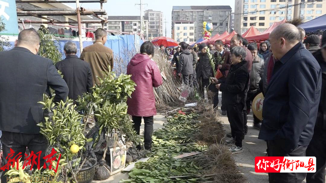 在衡阳县渣江镇大街上,处处人头攒动,熙熙攘攘,热闹非凡,沾着泥土的果树苗、自制方桌木椅、新编织的蓑衣和簸箕以及其他农资器具,摆满了街道两旁。农户们大声吆喝,吸引着来往群众前来购买。