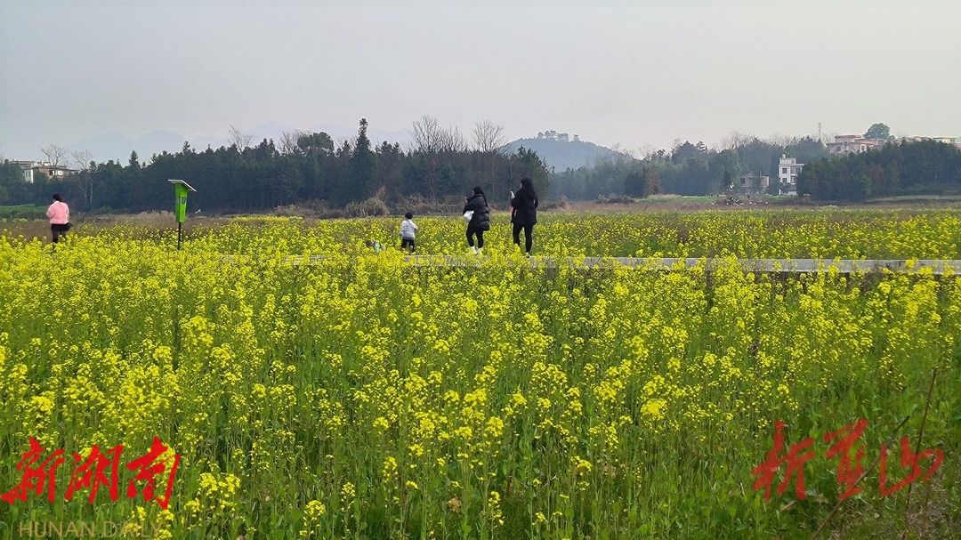 湖南日报·新湖南客户端1月27日讯 (通讯员 赵彬 盘俊杰)随着气温回升,塔峰镇雷家岭村近千亩油菜花竞相绽放。金灿灿的油菜花铺满大地,散发出浓浓的春意。