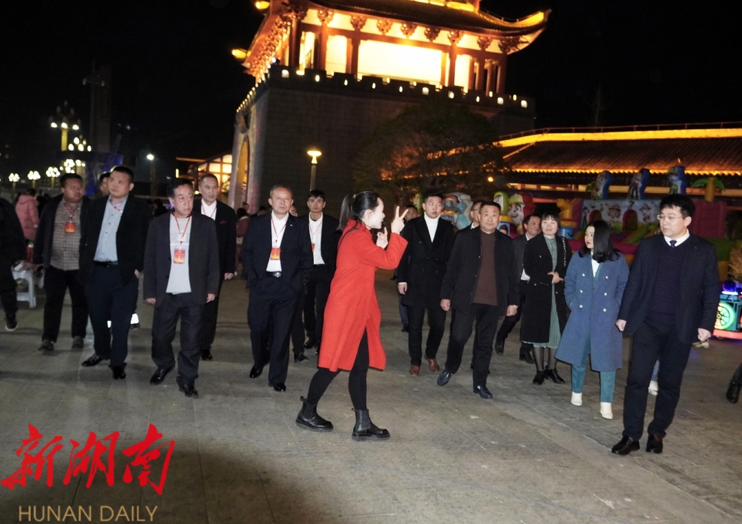新新邵客户端2月28日讯 2月27日晚,新邵县2023年第一季度招商项目集中签约仪式暨湘商回归和返乡创业专项行动誓师大会结束后,考察团一行在新邵县政协常务副主席陈历林等领导的陪同下,考察我县夜间经济。