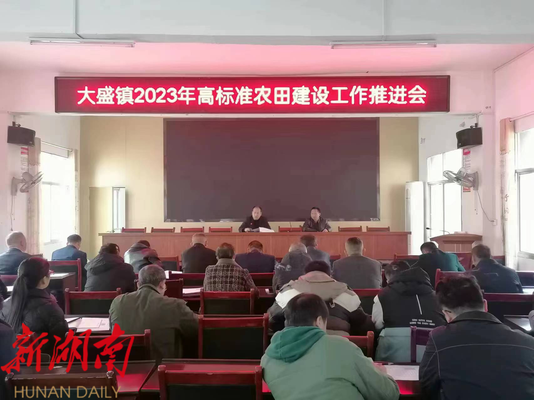 新湖南客户端3月1日讯( 通讯员 何鼎 ) 日前,大盛镇召开2023年高标准农田建设工作推进会,大盛镇村干部及涉及项目建设的相关人员参会。