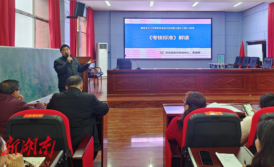 新湖南客户端3月1日讯(通讯员 屈艺倩 文艳丽)为全面推进教师“信息技术应用能力提升工程2.0”工作,有效提升教师信息技术素养,促进教师信息技术与教育教学融合创新发展,2月28日晚,东安三小特邀请县教育局相关人员在学校会议室组织全体教职员工开展信息技术2.0《考核标准》解读培训,给出专业性的能力点选择建议,并根据提交指南与评价标准说明作业的细则。