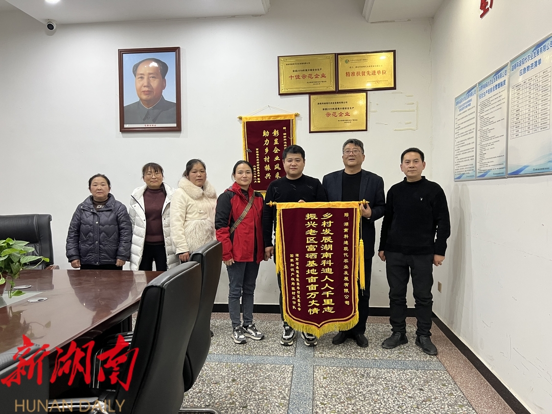 湖南日报·新湖南客户端3月4日讯 (记者 朱丽娟)3月3日,空壳树乡陈家坪村村支“两委”干部带着全体村民的深深谢意,将写着“乡村发展湖南科迪人人千里志、振兴老区富硒基地亩亩万丈情”的锦旗送到了帮扶单位湖南科迪现代农业发展有限公司,诚挚地感谢该公司及驻村帮扶工作队对陈家坪村乡村振兴给予的大力支持和帮扶。