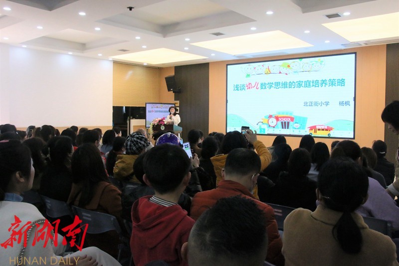北正街小学杨枫老师在“浅谈幼儿数学思维的家庭培养策略”的主题讲座中向家长介绍了要培养幼儿的数学思维,就要转变教育观,剔除功利化,让学习变得生活化、游戏化。