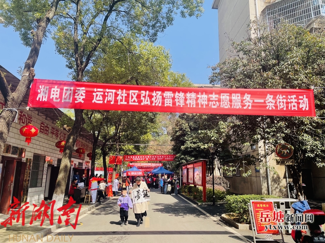 3月5日上午,下摄司街道运河社区的“学雷锋一条街”开摊“营业”。来自下摄司街道新时代文明实践所、运河社区新时代文明实践站、湘电团委、电气职院团委、湘机小学等单位400多名学雷锋志愿者,在“雷锋一条街”上发挥各自所长,8大类志愿服务让居民在家门口享受了义诊、洗车、磨刀、维修家电、照片打印等便民服务。“学雷锋一条街”由运河社区和湘电团委于2002年创办,已持续21年。