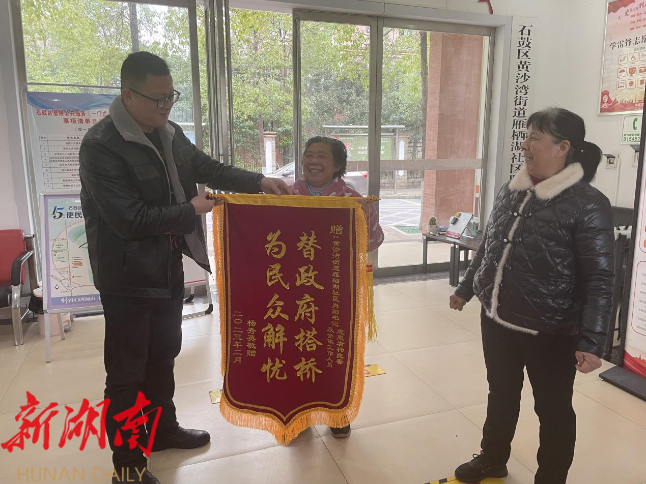黄沙湾街道雁栖湖社区:独居老人送锦旗 为民服务暖人心