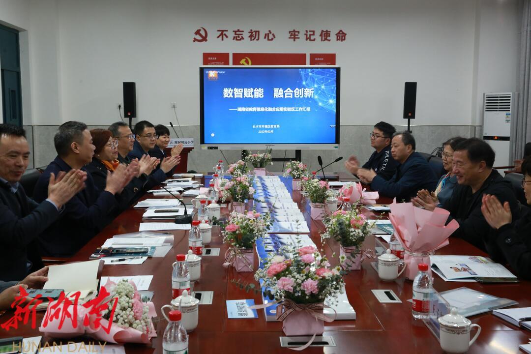 接着,开福区教育局党组成员、副局长王平以《数智赋能 融合创新》为主题,汇报了开福区教育信息化融合应用试验工作开展情况。开福区从入选湖南省教育信息化融合应用实验区以来,以实验工作为抓手,加强教育信息化顶层设计和融合创新应用,取得了突出的成效,打造了特色鲜明、效果显著的智慧教育开福特色。下一步,开福区将强化举措,扎实推进教育信息化融合应用实验工作,推动育人方式变革,提高教育教学质量,促进教育优质均衡发展,加快教育现代化步伐。