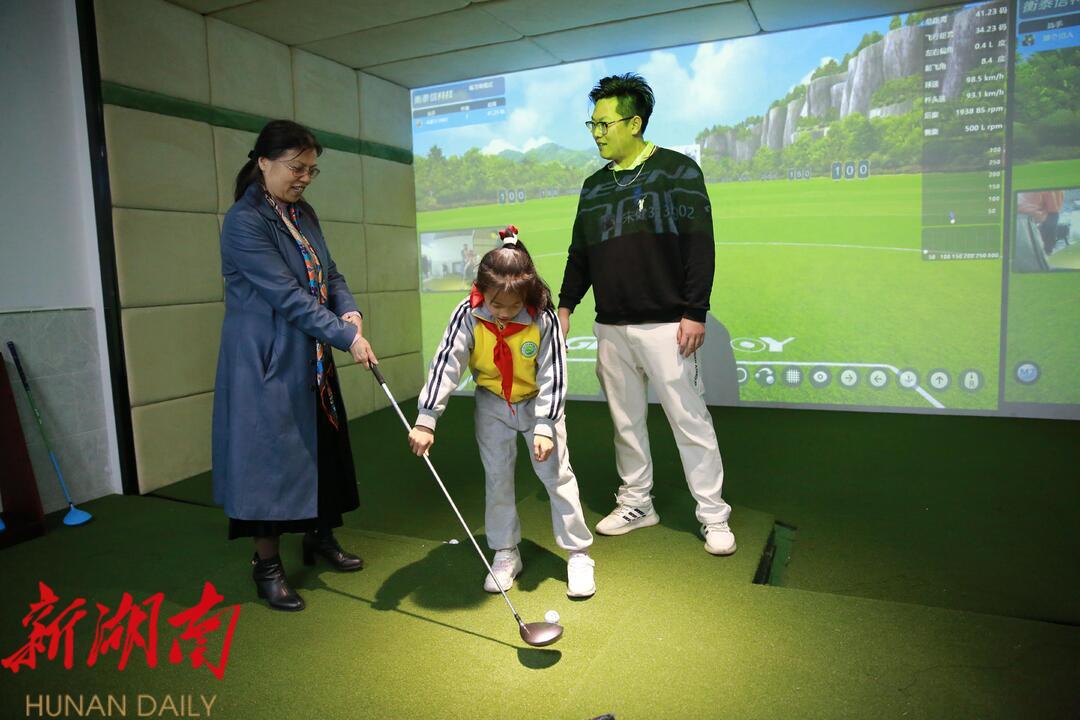 在科创教室内,孩子们正在上人工智能课,孩子们运用各种器材和工具,展示了机械、结构、电子控制、信息技术等综合知识,赢得了老师们的一致好评。在高尔夫AR模拟练习场,孩子们挥杆、打球、进洞,智能模拟器根据打出的球的速度和角度计算出球的落点,让大家身临其境,引得调研组专家们也忍不住亲身体验了一把“挥杆”。在网络联校教室内,莫迁老师带来了一堂有趣的数学课——《好玩的四连方》。教师采用在小组探究合作的方式,充分应用智慧平板答题功能,将所有小组的学习情况实时反馈于教师的智慧平板端,进行学习数据的收集、整理,实现了现代信息技术与课堂教学的深度融合。 调研组成员在参观、体验的过程中充分感受到了长沙师范附属创远小学作为湖南省教育社会实验首批实验单位、长沙市未来学校创建校、开福区首批智慧校园示范校已然初步形成的教育信息化、智能化的新生态。