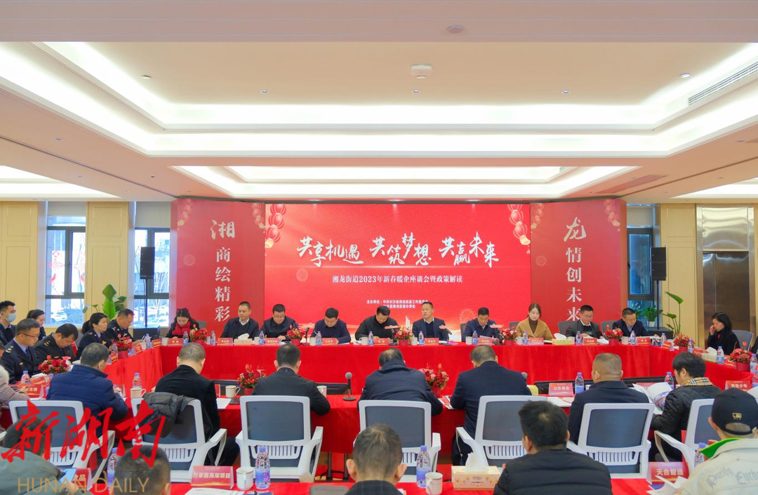 “街道将一如既往当好企业发展最强后盾,竭尽全力为企业营造稳定可预期的发展环境,让各类企业放心投资、安心经营、专心创业。”在湘龙街道举办的“共享机遇、共筑梦想、共赢未来”2023年新春暖企座谈会暨政策解读座谈会上,街道全体党政领导及相关部门单位与60余名企业家代表齐聚一堂,政企围坐,共谋湘龙经济社会高质量发展的腾飞大计。
