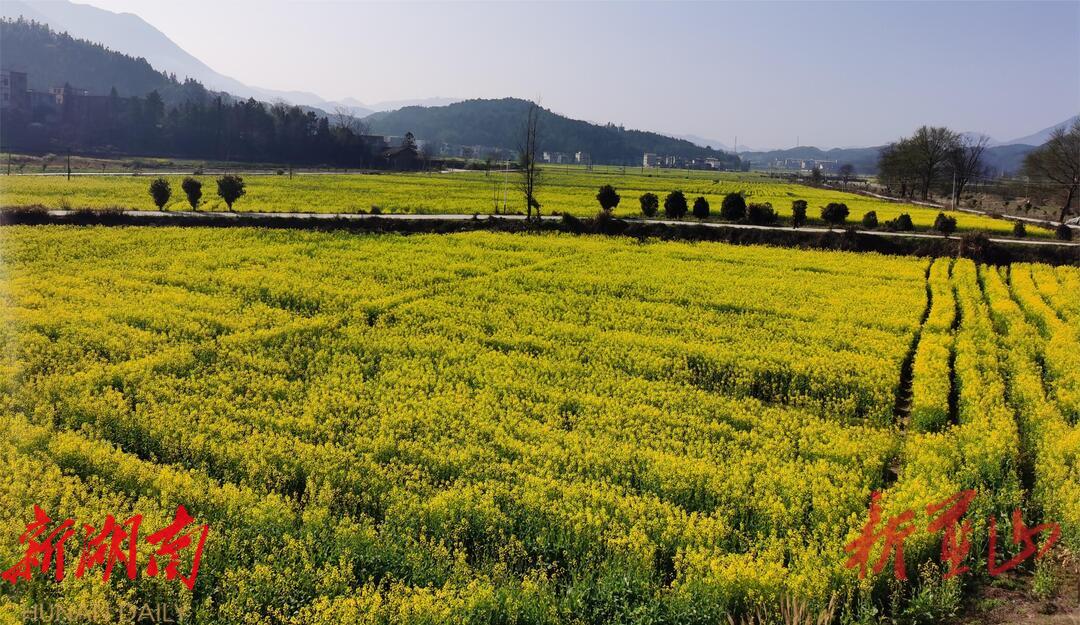 据了解,为盘活土地资源,去年舜河村积极探索“党支部+合作社”的组织模式,共流转出800余亩土地用于双季稻种植。为避免季节性丢荒,舜河村利用冬闲田种植油菜花,在壮大村集体经济的同时,也带动了乡村振兴旅游产业的发展。有了舜河村的成功范例,该镇开始了大规模土地流转,以湘九公路为主线,沿线形成了油菜万亩示范片。利用秋收后的稻田空档期发展油菜种植,既解决了以往农户种植管理效益不明显、成本高、标准不统一等问题,又实现了经济效益的全年覆盖。