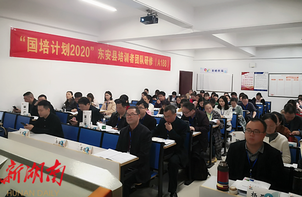 新湖南客户端11月3日讯(通讯员 胡宝陔 蒋芳)11月2日,来自东安县一线教师、教科研人员、教师培训管理者共60人赴湖南省科技大学,开展“国培计划2020”东安县培训者团队研修。