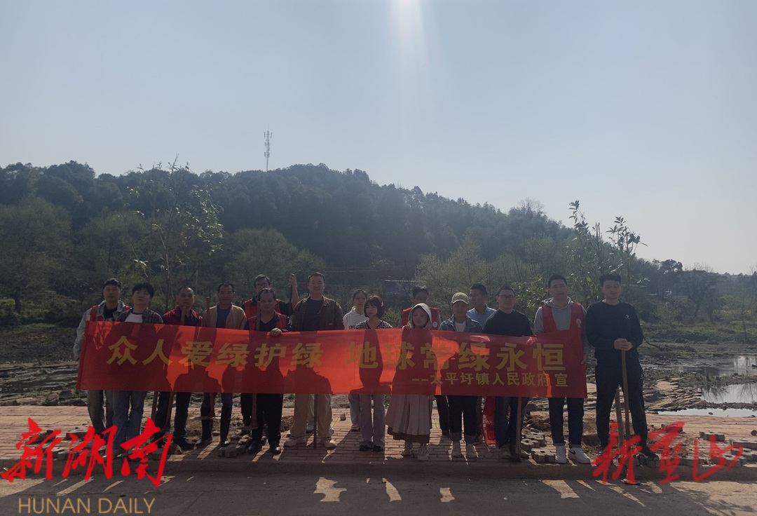 ▲早春三月,草长莺飞,为深入贯彻落实习近平生态文明思想和党的二十大精神,切实做好全民义务植树工作、践行新时代文明示范活动、促进生态文明建设,共建大美蓝山。3月10日下午,在全国第45个全民义务植树节到来之际,塔峰镇组织党员干部、新时代文明实践站志愿者来到流沙河榴源村河段开展义务植树活动。(通讯员 罗园)