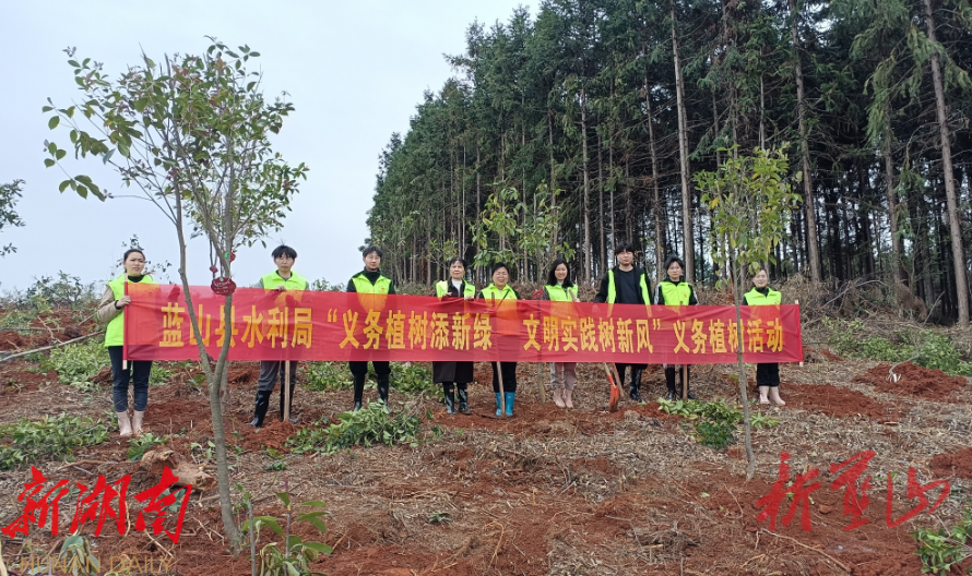 ▲为深入学习宣传贯彻党的二十大精神,大力弘扬雷锋精神,践行“绿水青山就是金山银山”的发展理念,3月13日上午,蓝山县水利局组织青年巾帼志愿者开展义务植树活动。(通讯员 翁莉花)