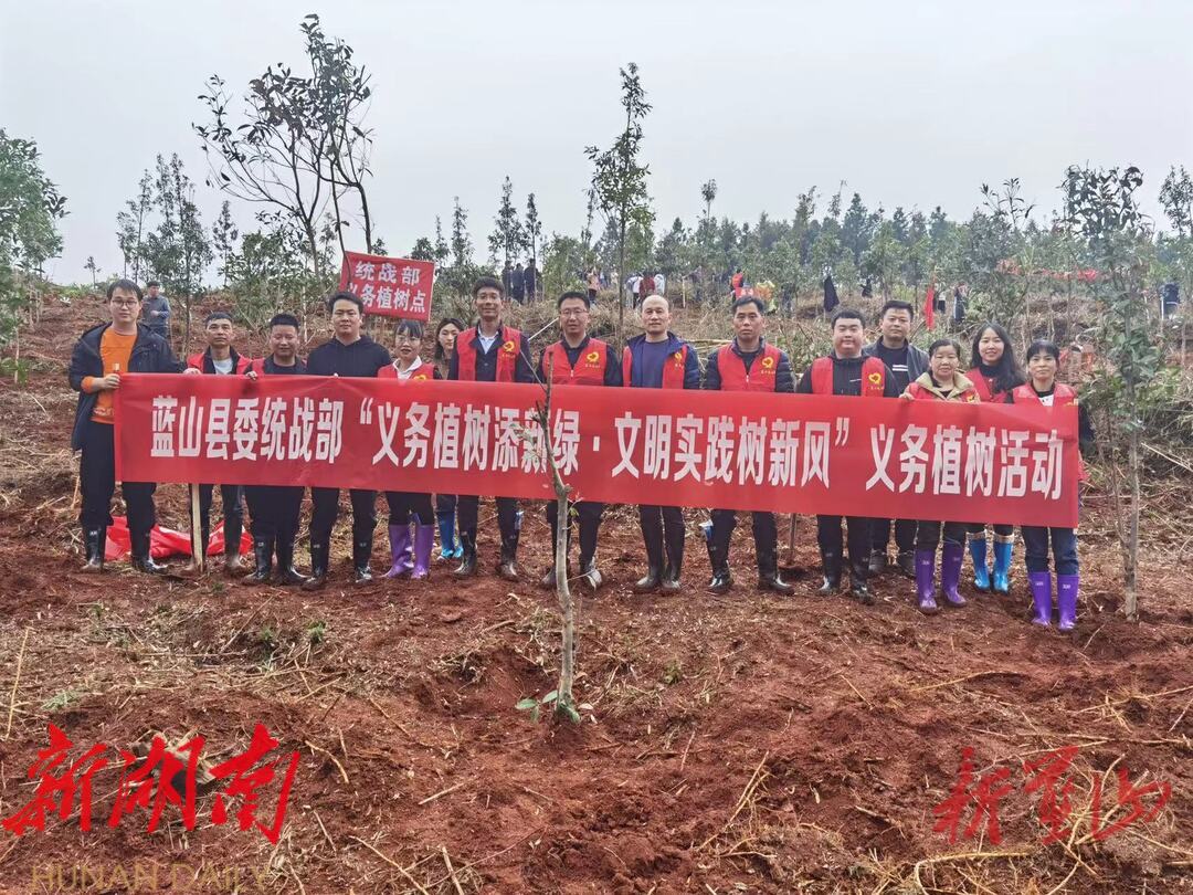 ▲3月12日,蓝山县委统战部组织全体干部职工赴楠市镇上下村大牛洞山场参加“义务植树添新绿,文明实践树新风”义务植树活动,为美丽蓝山再添新绿。(通讯员 李小梅)