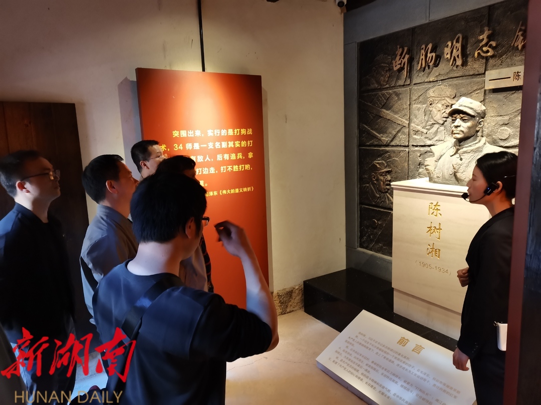 随后,在陈树湘故居,一行人认真聆听了陈树湘烈士 “断肠明志”的英雄故事,感悟陈树湘勇于献身敢于担当不屈不挠的精神,深深被陈树湘烈士“为苏维埃流尽最后一滴血”的壮志誓言所感动。