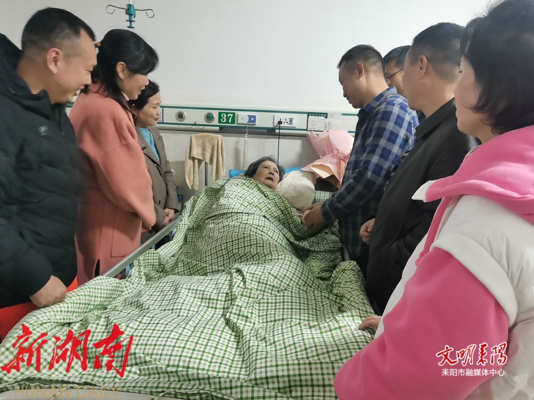 2月28日晚上,原耒阳城关镇金盆小学19班的部分学生手捧鲜花,提着水果,来到耒阳市中医院,看望当年的小学班主任段红艳老师。