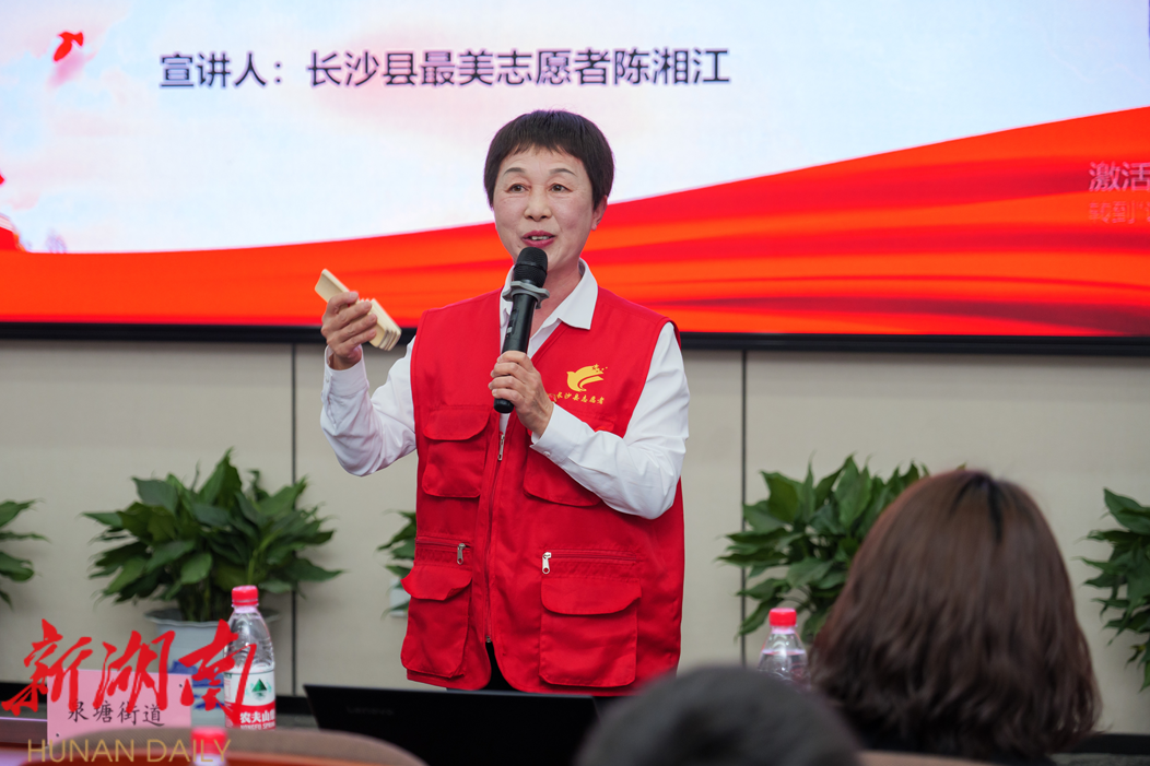 陈湘江表示,来参加活动前一周,她将长沙县的“好人”事迹编写进快板词,并反复排练。作为一名宣讲员、志愿者,将持续发挥宣讲作用,做雷锋精神的传播者和践行者。