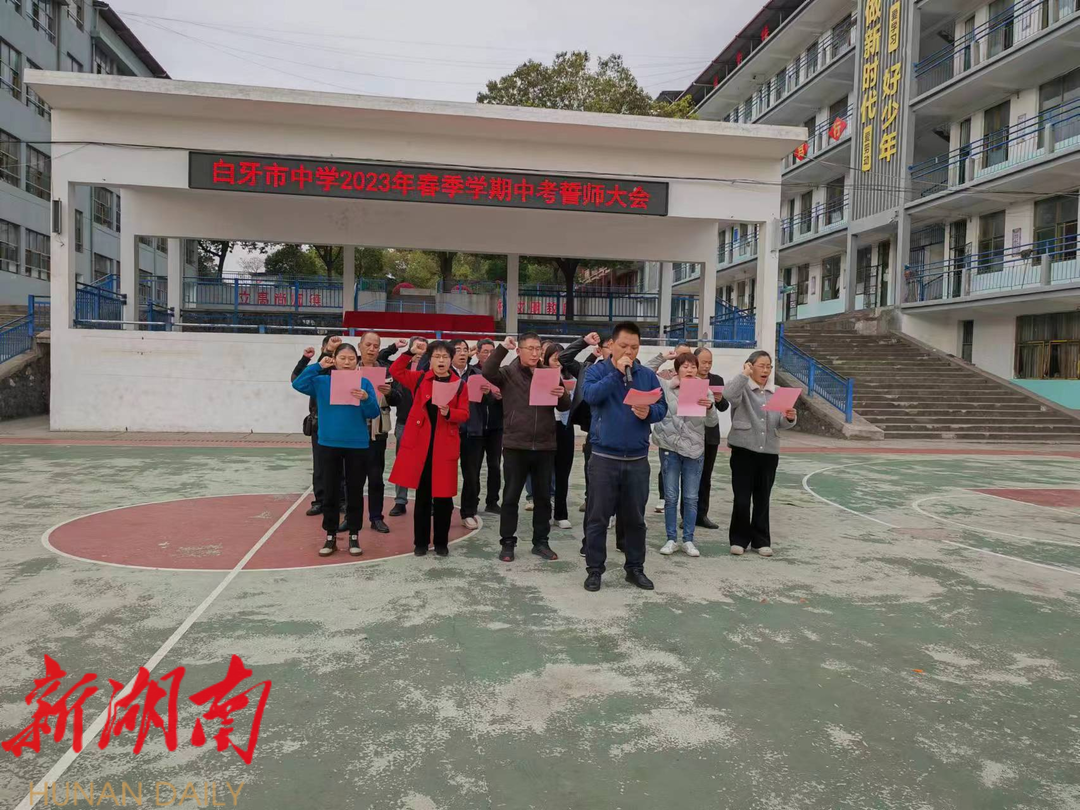 新湖南客户端3月16日讯(通讯员 唐素微 周文华)3月16日,白牙市中学举行初三中考百日誓师大会。