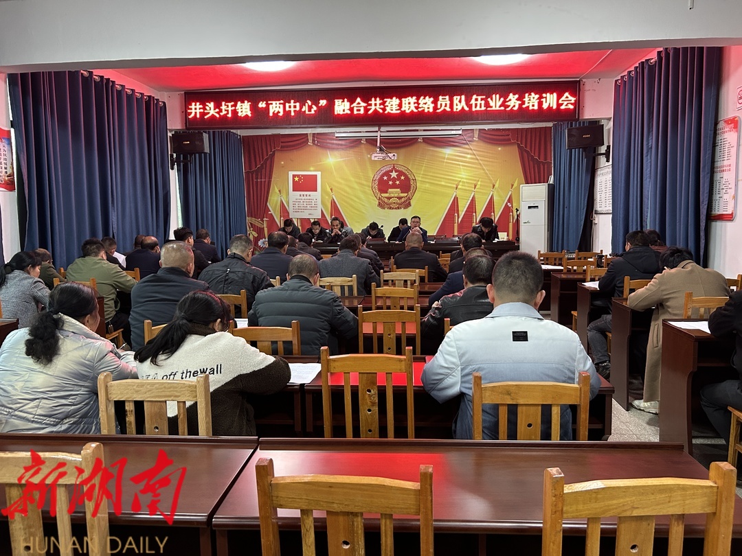 新湖南客户端3月17日讯(通讯员 唐俊峰 陈婕)近日,井头圩镇组织召开“两中心”融合共建联络员队伍业务培训会。镇全体通讯员及各村支部书记共计60余人参会。