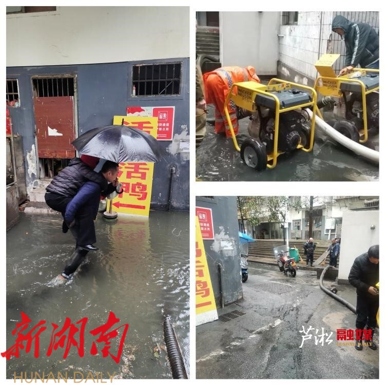18日深夜,建设街道学堂冲社区湘安小区17-18栋之间出现内涝,当夜,街道便组织物业公司进行抽水排涝,但由于雨量较大,加之七一路出现雨水倒灌,排涝工作进度缓慢。至19日早上8时,内涝水位达到50公分左右,低洼处最深超过1米,严重影响小区居民生活出行。19日上午,在持续降雨的情况下,区防汛抗旱指挥部办公室、区城管局、建设街道立即启动应急救援,组织社区工作人员及时转移群众,并从区市政调遣两台移动水泵进行增援。经过近8小时的共同努力,排涝工作于下午14时30分完成。