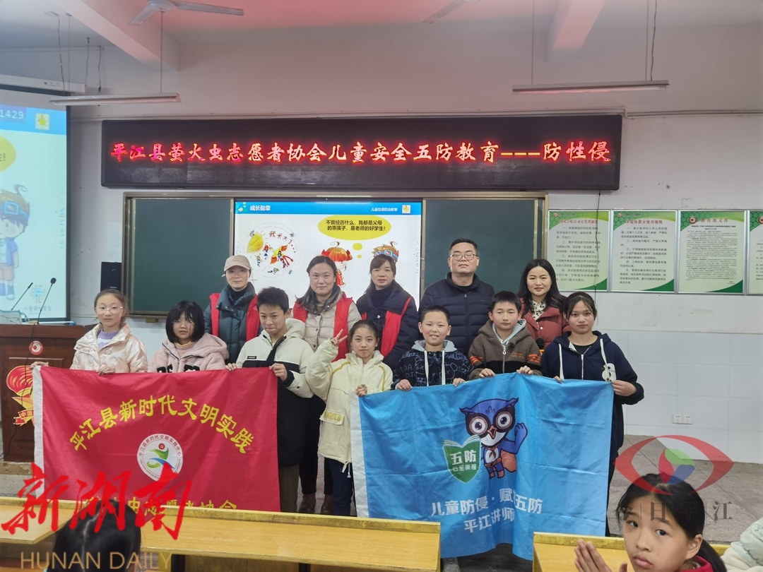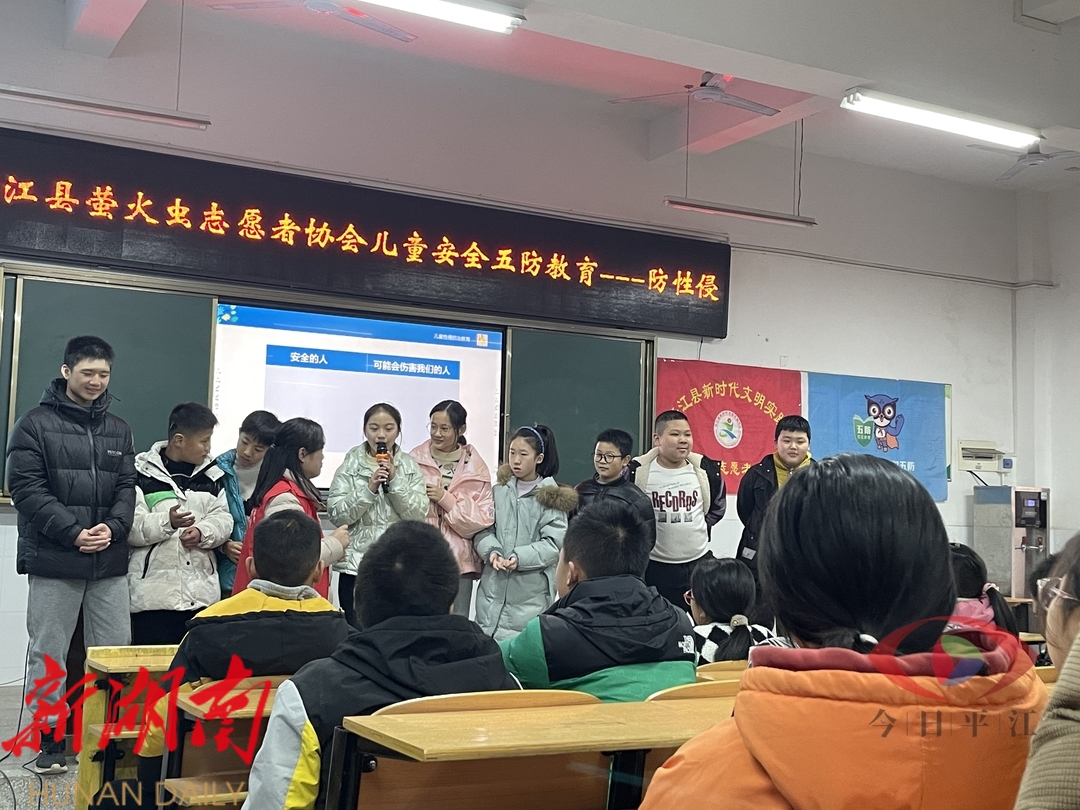 湖南日报·新湖南客户端2月24日讯(通讯员 黄潇 余玉龙)2月23日,平江县萤火虫志愿者协会五防小组走进平江三阳明德学校,为该校高年级学生开展了一堂主题为“爱护我们身体”的儿童防性侵主题教育课。