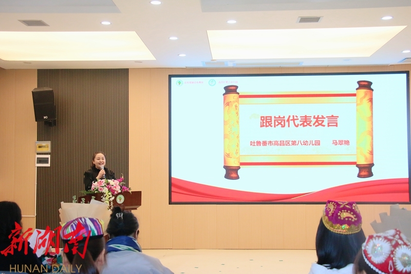 吐鲁番市和常德市相距3000多公里,却因为“红石榴”·“1+1”湘吐同心工作室这根纽带紧密联系在一起。2022年6月23日,武陵区中心园与高昌区八幼已通过线上视频的方式举行了“红石榴”·“1+1”湘吐同心工作室成立启动仪式。此后,两所幼儿园持续分享交流教学管理、队伍建设等方面的经验,并有54位教师结成“一对一”互助关系。此次新疆教师来中心园跟岗挂职,是两园所教师间交流合作的进一步深化。