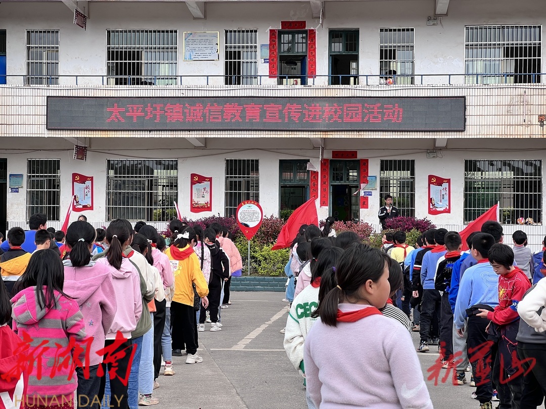 湖南日报•新湖南客户端3月22日讯 (通讯员 唐海涛)为全面加强社会信用体系建设,努力营造辖区内诚实守信的良好社会氛围。3月21日上午,太平圩镇工作人员和志愿者来到太平学校开展诚信宣传进校园活动。