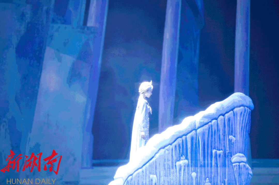 银装素裹的冰雪世界、晶莹梦幻的城堡、气势恢宏的王宫,还有艾莎随手挥舞出的冰雪魔法…各种惊艳的大型场景通通逼真复刻,《冰雪女王》舞台剧高水准的科技舞美技术 与恰到好处的 灯光色彩 ,打造了一个别具一格的魔幻舞台。