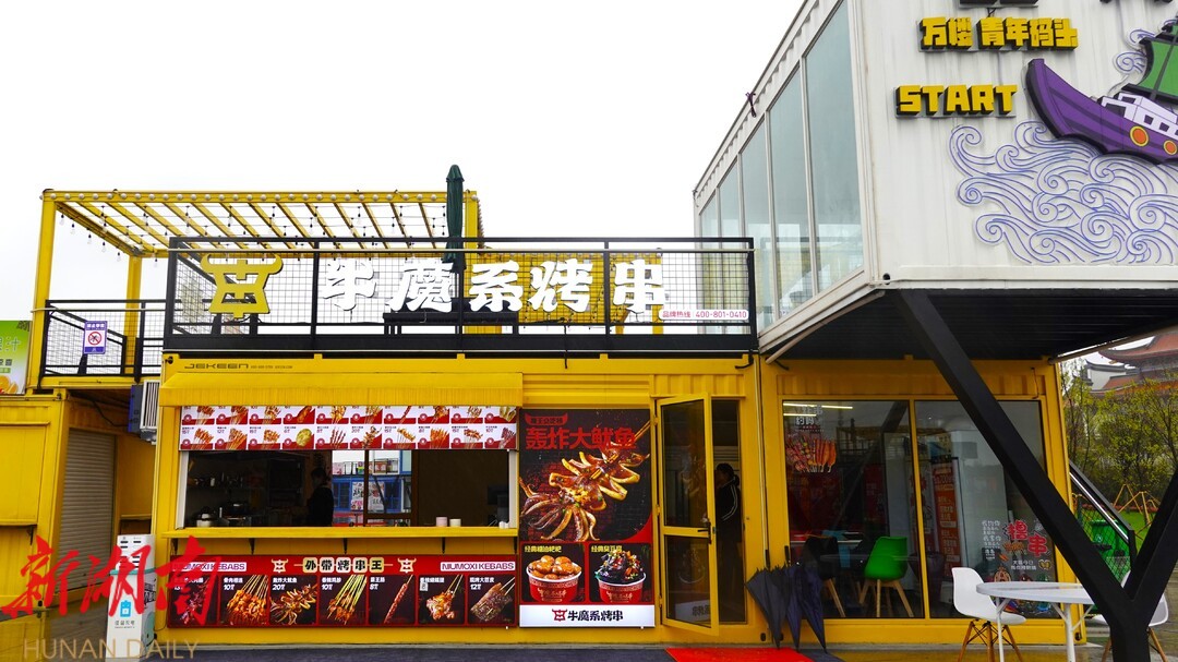 与朋友达成共识之后,她们一起去长沙实地考察了一段时间,决定开一家炸串店,最后加盟牛魔系烤串,准备在湘潭开一家分店。“炸串的品种丰富,而且上手快,总店有供应货源,比较适合我们这种创业者,所以我们专门去学习了如何做炸串。”学成归来,她们听到万楼·青年码头 招商的消息便去一探究竟。