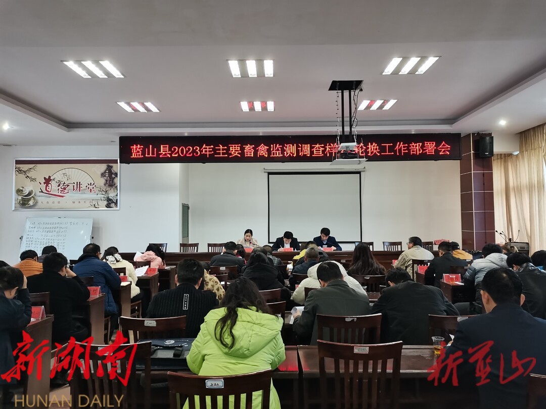 湖南日报•新湖南客户端3月29日讯 (通讯员 肖伊琳 萧鸿发 梁铁英)3月28日下午,蓝山县统计局、农业农村局联合召开2023年主要畜禽监测调查样本轮换工作会议。