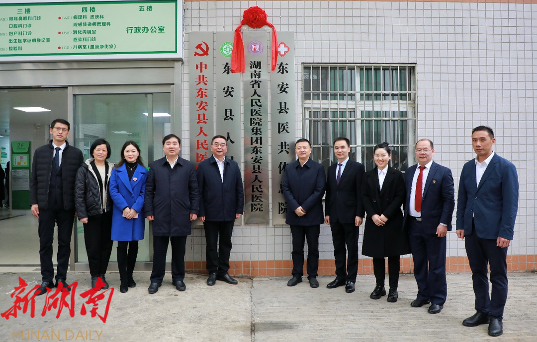 省人民医院党委书记谭李红,县委书记唐何等领导共同为“湖南省人民医院集团东安县人民医院”揭牌