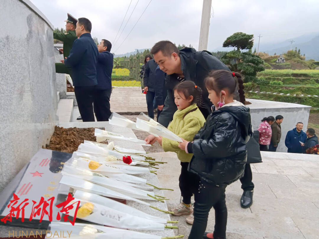 湖南日报·新湖南客户端4月6日讯(记者 樊文婷) 4月5日,永定区天门山镇为两名散葬烈士墓举行集中迁葬入园仪式。区委常委、区人武部政委张觉先,市区退役军人事务局、天门山镇相关负责人参加仪式。
