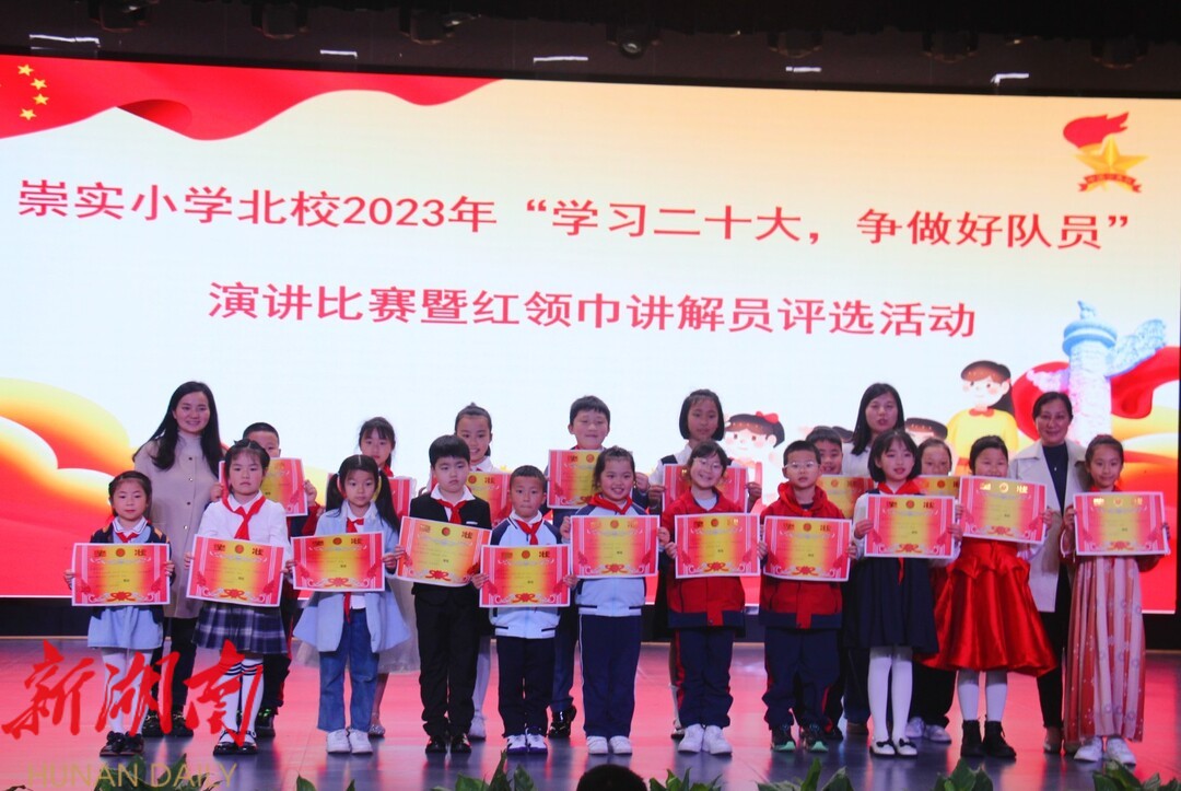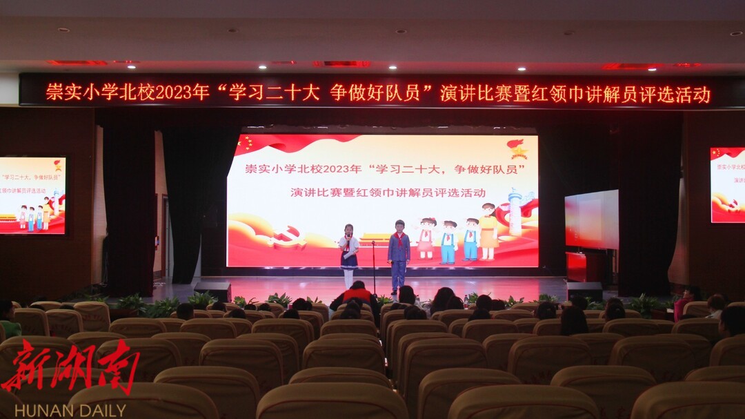 湖南日报·新湖南客户端4月4日讯(通讯员 胡丹) 为深入学习贯彻党的二十大精神,引导少年儿童坚定理想信念、厚植家国情怀,努力成长为德智体美劳全面发展的社会主义建设者和接班人。4月3日上午,崇实小学北校举行了“学习二十大,争做好队员”演讲比赛。